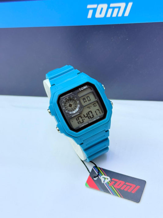 TOMI Digital Square Compass Pedometer Watch – Assorted Colours