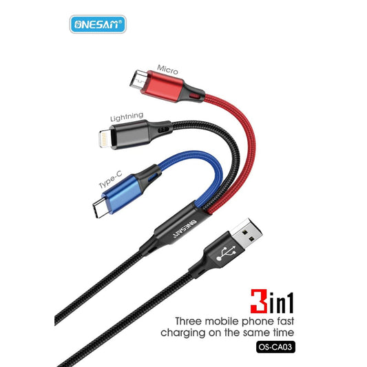 ONESAM 3-in-1 Fast Data Cable โ Micro, Type-C & Lightning (OS-CA03)